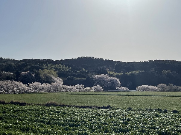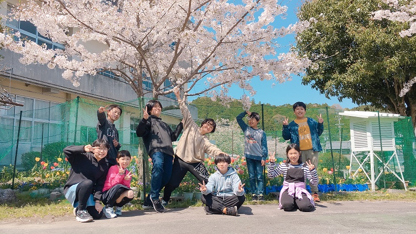 花壇のところで春の記念撮影