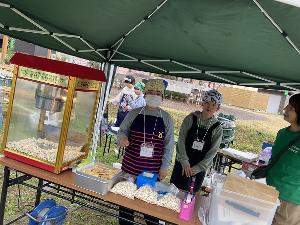去年と同様、ポップコーンもうってます。「おいしいよ!」「いらっしゃい!」