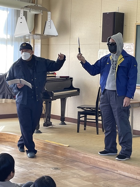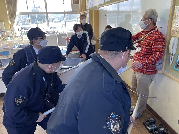 不審者からの逃げ方も、さすまたなどの道具の使い方も覚えておきます!