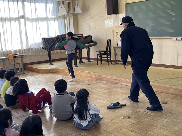 今回は、3階の3・4年生教室に不審者が侵入したときの避難訓練です。