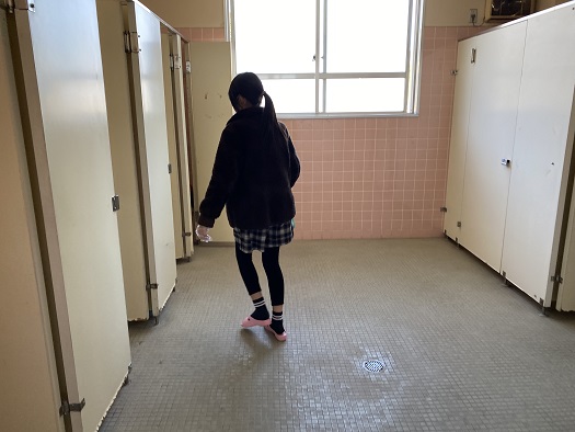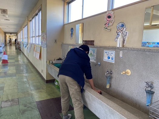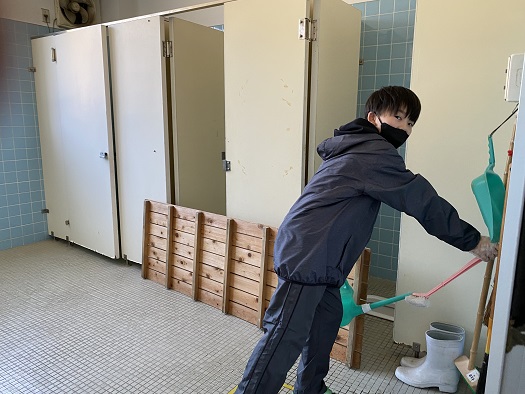 トイレや手洗い場 冷たい場所ですが 黙々とそうじに取り組む姿が