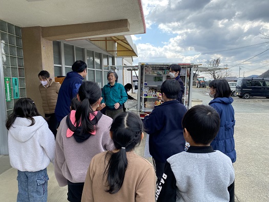 今日は、3・4年生が 社会の勉強でお世話になった移動購買車「幸多ろう号」に