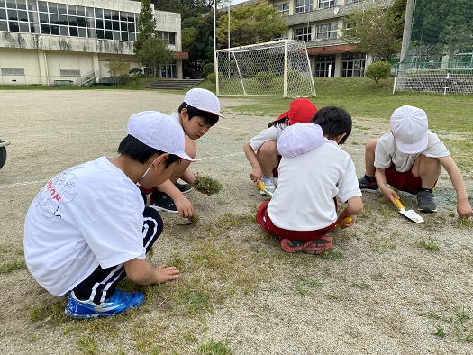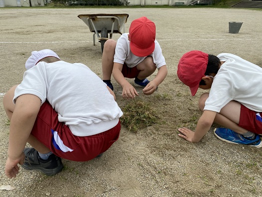 1年生も他の学年のお友だちと一緒に 仲よく がんばって草を