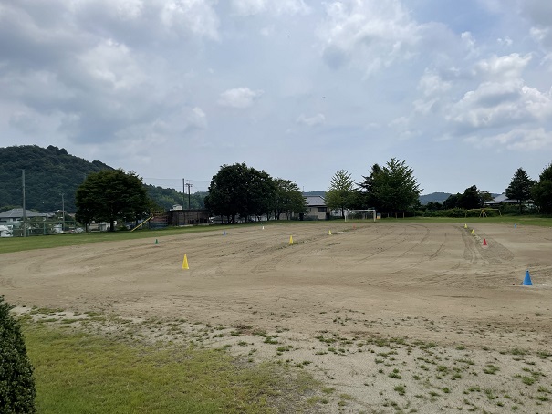 猛暑が続く中、地域(榊原出張所・公民館)の方が、運動場整備をしてくださいました。