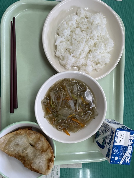 今日は大人気のメニュー「津餃子」をほおばって、幸せな給食の時間となりました。