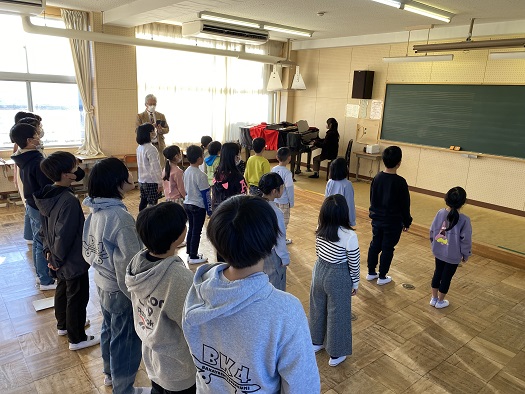 最初は校歌!今日も元気な歌声です。
