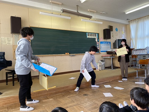 児童会が 休み中に気をつけることを劇で 伝えてくれました。