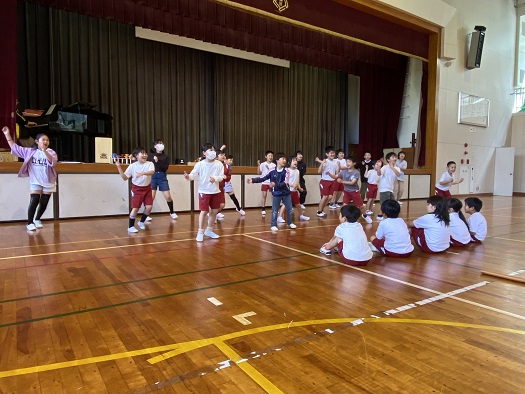 まず 経験者の2~6年生が 1年生に披露しました。