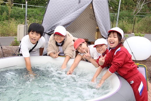 冷水浴ジャグジーに手を入れたり、笑顔と歓声があふれました。