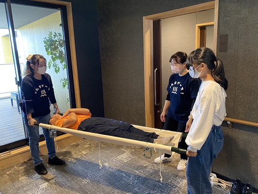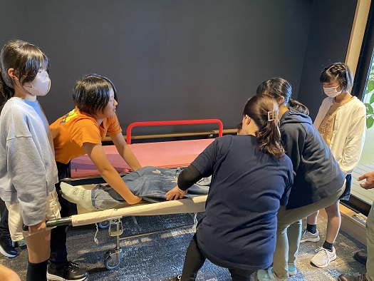いすとストレッチャー、担架の使い方について 体験しました。