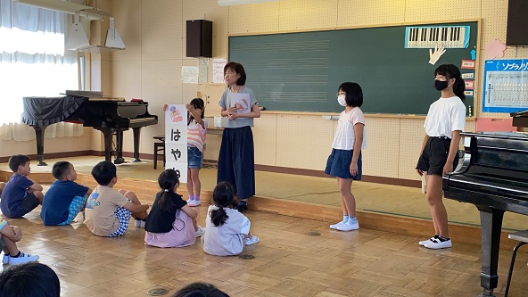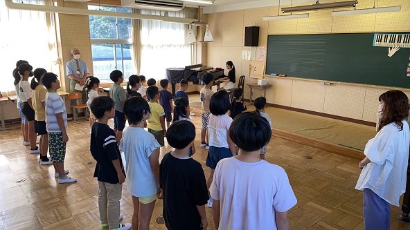 まずは、校歌。子どもたちの歌声が 学校に響きます。