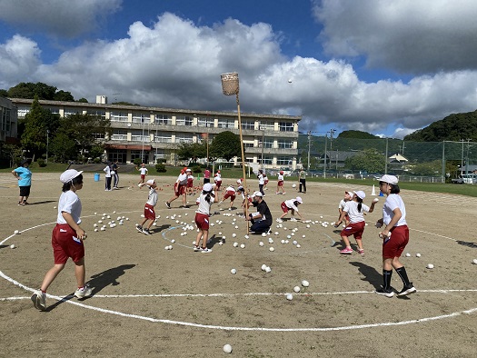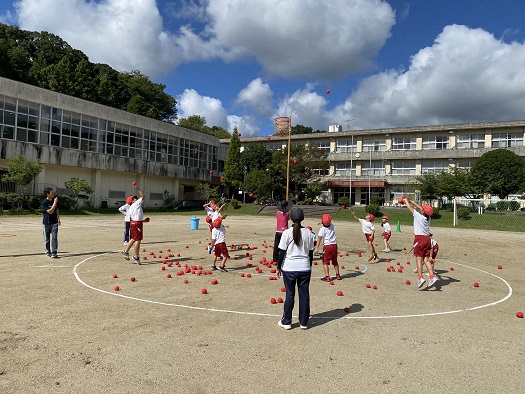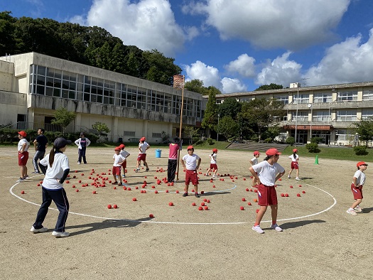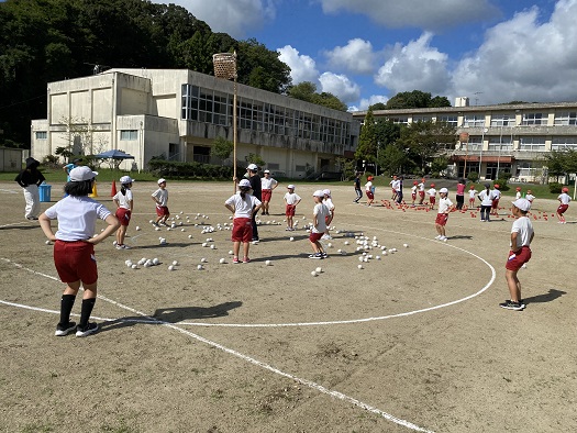 開会式の練習の後は 赤白玉入れです。