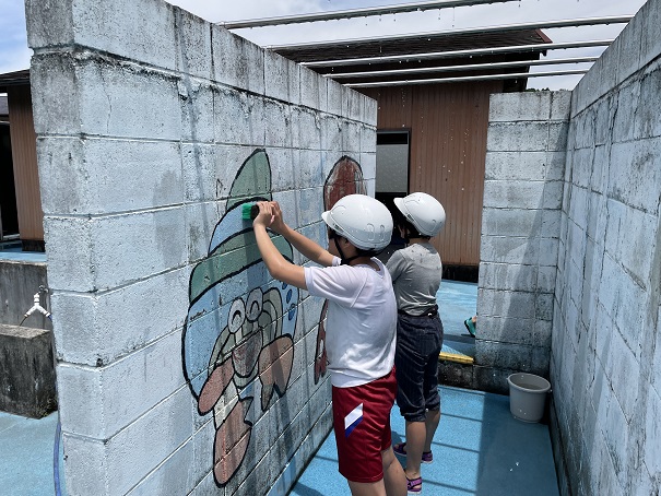 子どもたちも、ぬるぬるを一生懸命落とします。