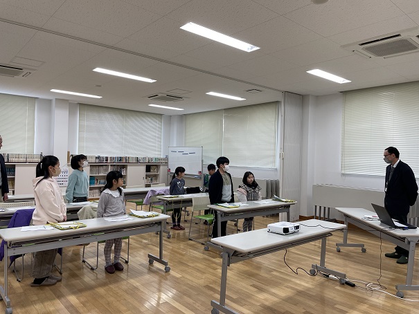 田中館長さんから、施設のできた日や大きさ、目的等について、わかりやすい説明がありました。