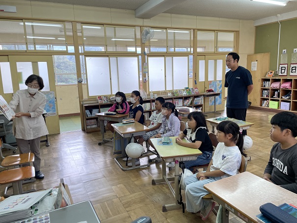 1・2年生は西山司書さんによる「もとこども」「へんしんオバケ」の読み聞かせ