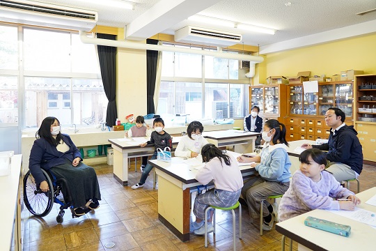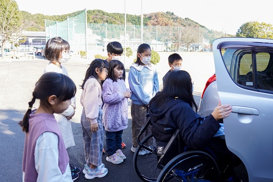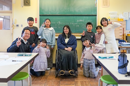 車いすを使う生活になってからも、様々なことにチャレンジしている石原さん。その姿から、子どもたちは「わたしたちと 何にもかわらん」と感じることができました。