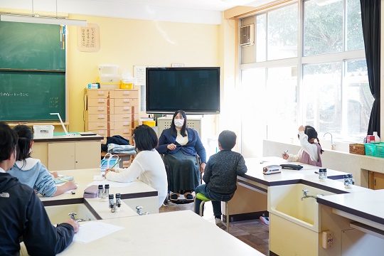 小学生の時に 理科で生き物を育てるのが好きで、メダカの水槽をよく洗っていたことなどの話を聞き、子どもたちと石原さんの距離は どんどん縮まっていきました。