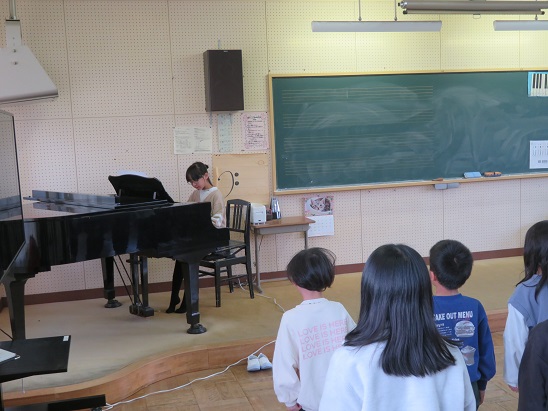 校歌のピアノ伴奏は、6年生が今回の終業式をめざして練習し、弾いてくれました。