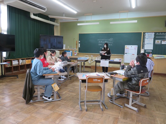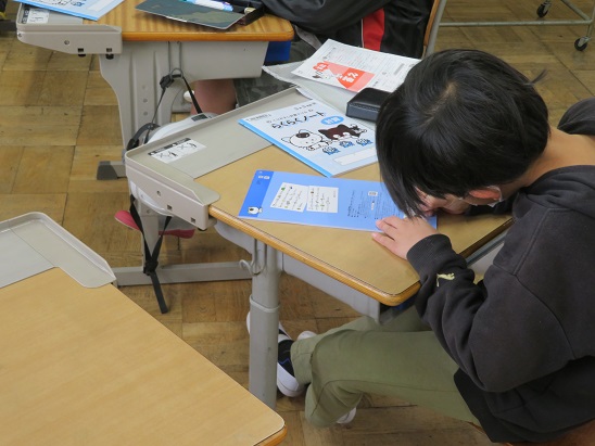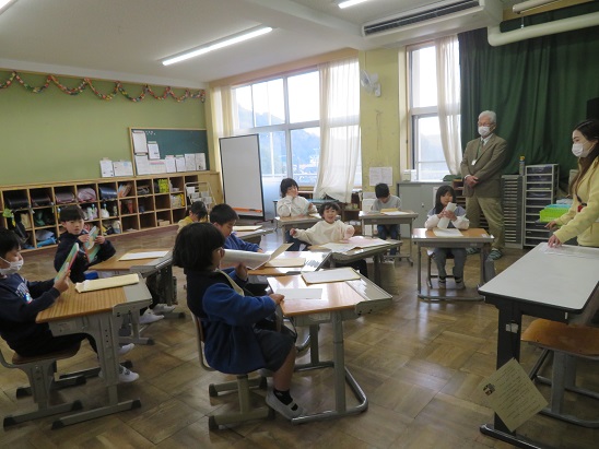 その後、教室では、担任の先生から 2学期をふり返ってのお話を聞きながら ひとりずつ 成績表を受け取っていました。