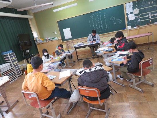 2学期に 子どもたちみんなが あきらめずに がんばってきた姿や 力いっぱいやり切った行事・思い出いっぱいのできごと等の写真を見ながら ふり返りました。