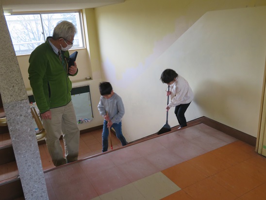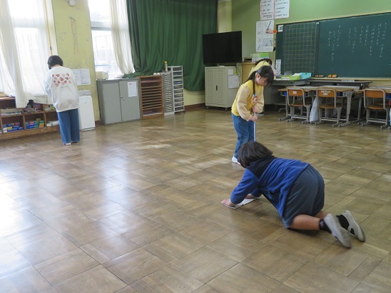 みんなで使った 給食の配膳台、今日 お休みしてしまった友だちの机も きれいにしていました。