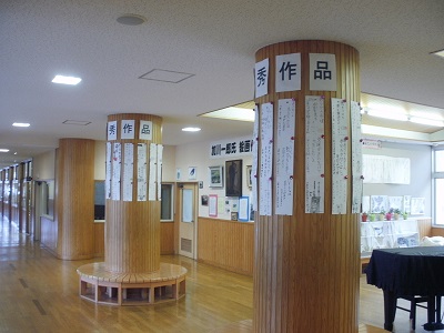 校舎正面玄関一階のギャラリーに、全校児童が夏休みに考えた