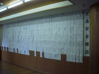 子どもたち一人ひとりが交通安全について考えて、「あおり運転をやめよう」や「ながら運転をやめよう」などのメッセージを標語にしました。