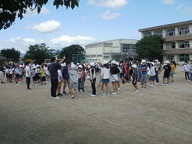 10月1日「第2回避難訓練」を実施しました。今回は地震を想定した訓練でした。児童たちが教室、廊下、運動場など様々な場所にいる20分休みに訓練を行いました。それぞれの場所で、ダンゴムシのポーズになって身を低くして守った後、素早く安全に避難場所に集合することができました。いつ起こってもおかしくない災害に、日頃から備えておくことが重要であることを子どもたちに伝え続けていきます。