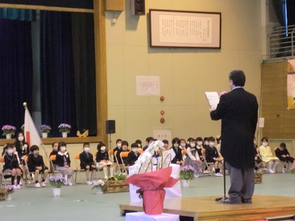 コロナウィルス対応のため、会場では新入児、保護者、学校職員に