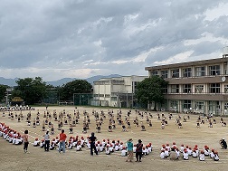 運動会前日の9月18日(金)5時間目、高学年が低・中学年に日頃の練習の成果を披露してくれました。今年は規模を縮小しての開催なので、他学年の表現や競技を観ることができません。そこで、学校のリーダーである高学年の「私たちの演技を他の学年にもみてほしい」という思いを実現することができました。
