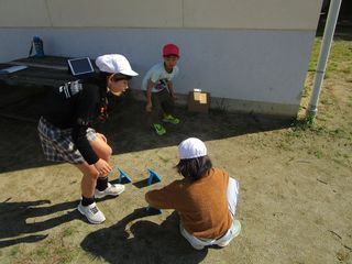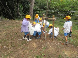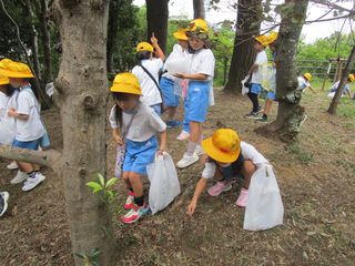 お弁当を食べた後は、お城公園で、操を食べたり秋見つけをしたりして過ごしました。