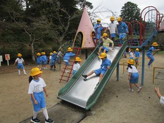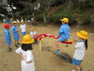 古川公園では、ドングリやマツボックリを探したり、遊具で遊んだりしました。
