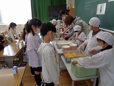 もちろん、今日のメニューもカレー。そして、手作りのオレンジゼリーもついています。1年生も朝から「楽しみ!!」と話してくれました。