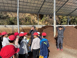 4年1組が午前中に、4年3組(15日(金)に予定していましたが、バスの関係で急遽本日午後に見学に行きました。)が午後に、有限会社「三功」第一リサイクルセンターに、生ごみを堆肥に変える工程やその堆肥を使った野菜作りを見学しました。