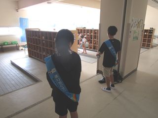 今朝、昇降口を通ると、児童会が「あいさつ運動」をしてくれていました。