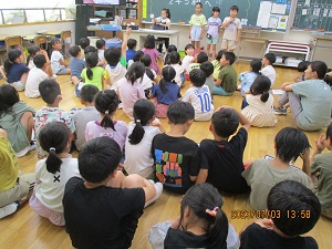 2年生は、1年生へ「学校案内」を行っていました。緊張しながらも1年生に聞き取りやすいように大きな声で発表をしていました。