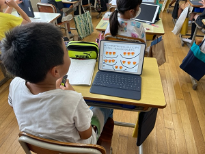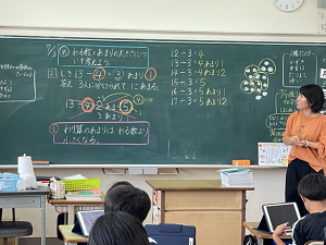 3年生は、算数の時間に「あまりのある計算」で、式にある規則性を見つけ、発表をがんばっていました。