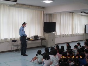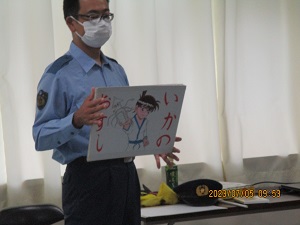 「いかのおすし」という防犯標語のお話をしていただきました。ご家庭でも、「いかのおすし」を再確認してみてはいかがでしょうか。