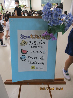 図書ボランティアの方々に、「朝の読み聞かせ」、20分休みには、2階ホールで「季節のお話し会」、2・3限目には6年生の「お話し会」をしていただきました。ありがとうございました。