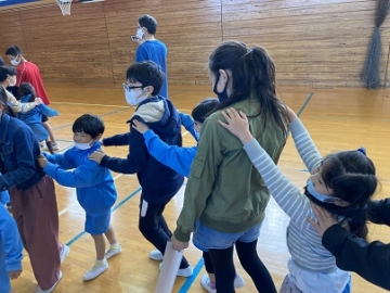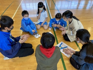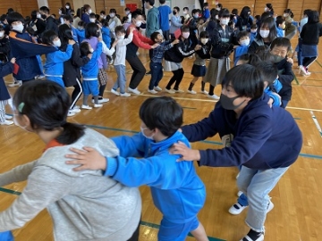 4月15日(木)の3限目、1年生と6年生とが体育館に集まり「顔合わせ集会」を行いました。4月23日(金)に一緒に遠足に行く前に、1年生と6年生とがペアになって仲良くなるための集会です。最初にグループで自己紹介をした後、ペアになる2人組をつくり、簡単なゲームを一緒にしました。最初は表情の硬かった1年生でしたが、ゲームが終わることには笑顔がたくさん見られました。当日の遠足が楽しみですね。