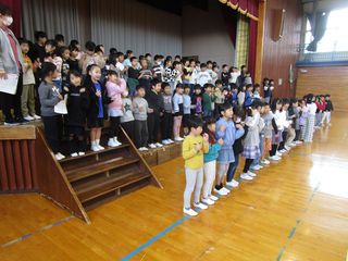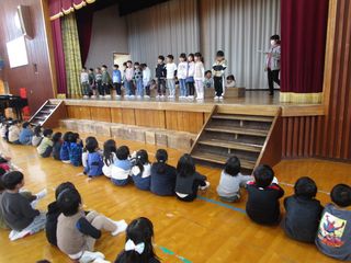 歌や呼びかけ、寸劇などを入れながら、元気に発表できるよう、頑張って練習していました。