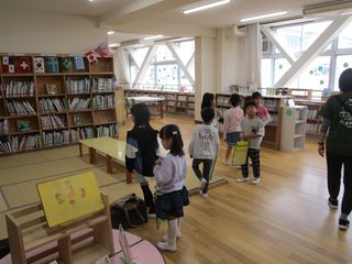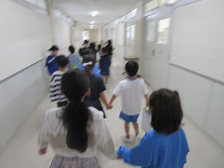 1年生が迷子にならないよう、2年生が手をつないで案内しました。