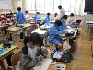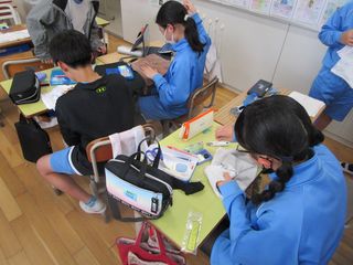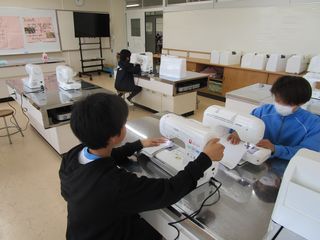 6年生が家庭科で雑巾づくりに取り組んでいました。