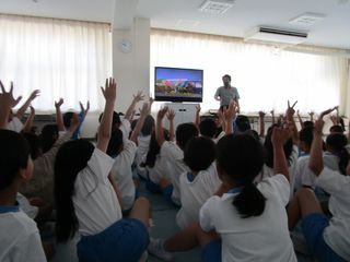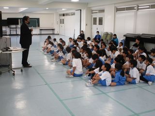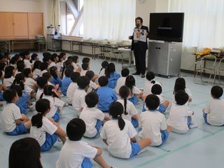 今日の2限目に、津警察署の方に来ていただいて、1年生を対象とした誘拐防止教室が行われました。