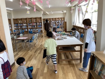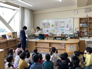 1年生にとっては、本の貸し出しも初めての体験です。今週は図書ボランティアの方々にもご協力いただき、各クラスごとに正しく本を借りる時のルールを学びました。一度に何冊も借りない、順番抜かしをしない、きちんとクラスと名前を言ってから借りる等、司書さんによる紙芝居と図書ボランティアの皆さんによる分かりやすい寸劇を見ながら学ぶことができました。