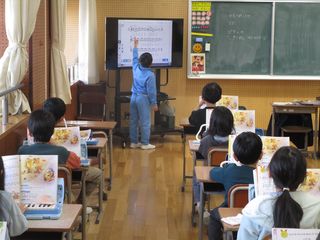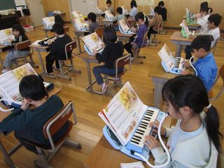 2年生が音楽で「こぎつね」を鍵盤ハーモニカでひいていました。