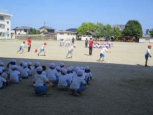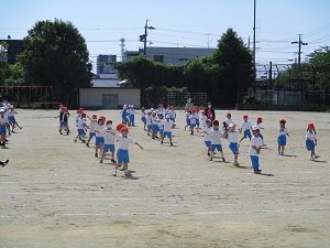 3.4年生は、徒競走の練習をしていました。本番さながら最後まで一生懸命に走っていました。
