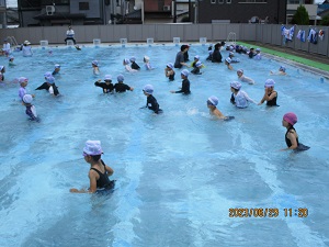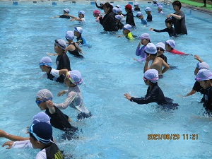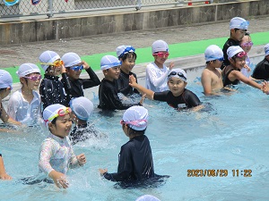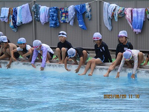 年生は、初めての学校でのプール水泳で、シャワーを浴びるだけでも大歓声。