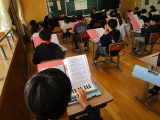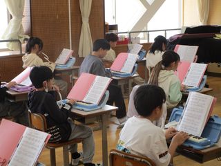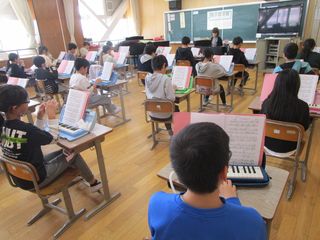 5年生が音楽で鍵盤ハーモニカの練習をしていました。