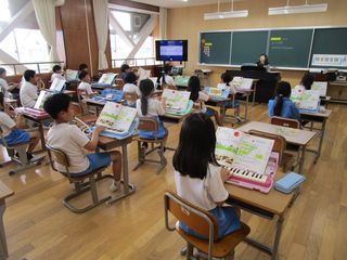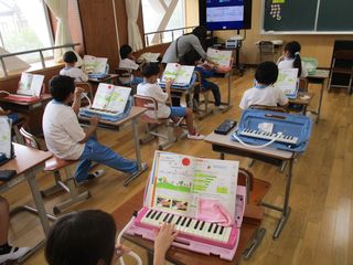 3年生の音楽で鍵盤ハーモニカの練習をしていました。